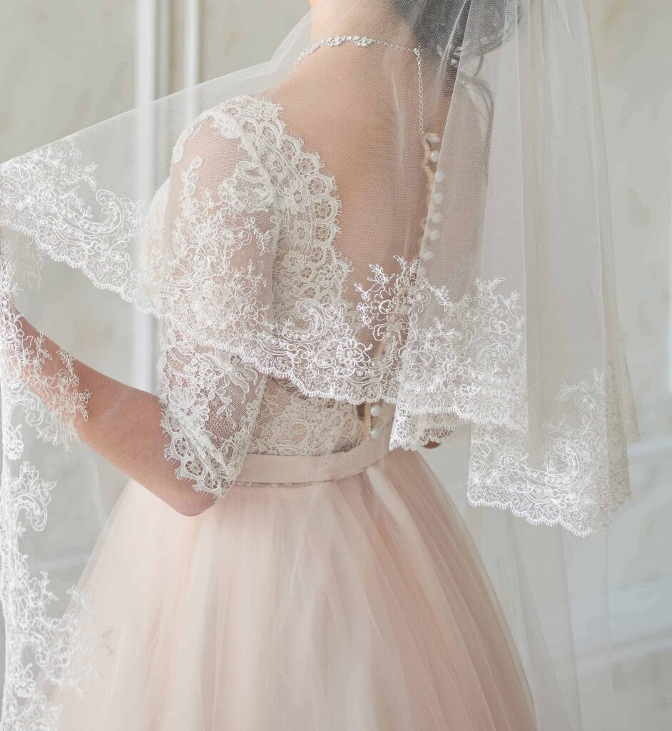 Voal de lungime mica 1.5*1.5 m lungime are parte dubla ce poate fi data pe fata ,acest voal este din tull cu terminatie brodata si aplicatii din margele transparente si pieptan montat ce se prinde in par