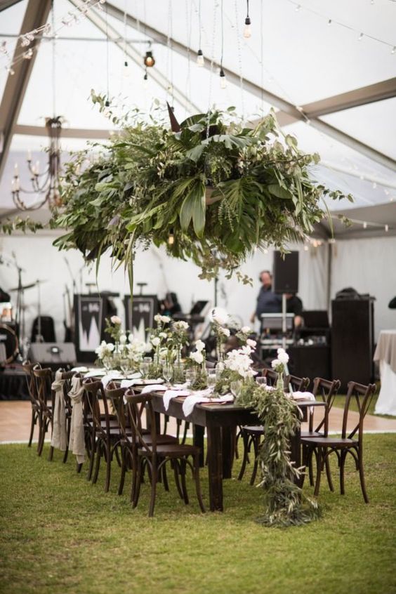 În locul restaurantul clasic, optează pentru o grădină de vară, un conac în pădure sau o livadă. Alege în special plante cu frunze verzi și crengi naturale pentru decorațiunile din centrul mesei. Le poți așeza pe masă sau le poți pune în lădițe de lemn, ghivece din ceramică sau recipiente din sticlă sau metal. Țesături naturale precum inul, pânza de iută, dar și voalurile sau alte materiale vaporoase vor completa armonios florile naturale și frunzele din decor. Nu uita de lumânările albe, sunt ideale pentru o tematică de nuntă precum