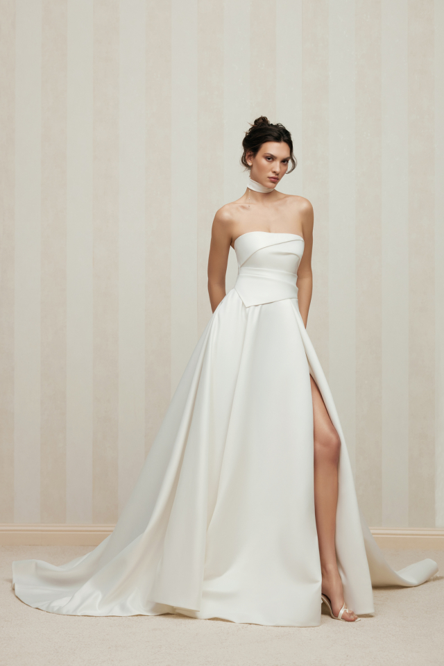 Tendințele majore pentru rochiile de mireasă din 2025 se concentrează pe: silueta A-line, minimalismul elegant, simplitatea cu aer de lux, detaliile rafinate și prețioase.
