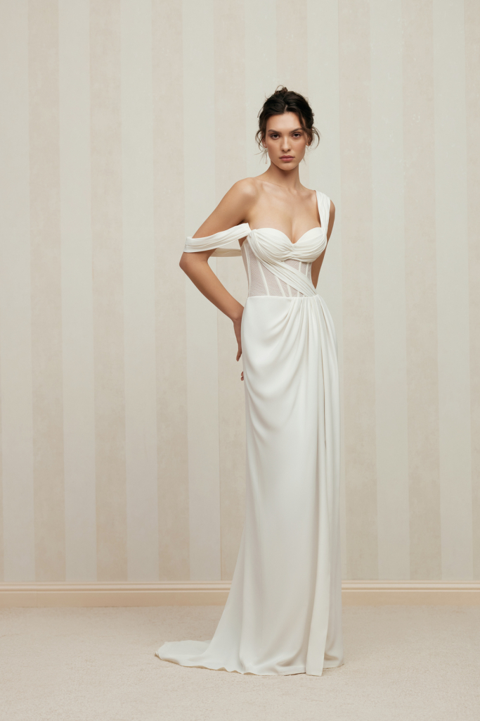- O rochie cu siluetă dreaptă, inspirată de eleganța zeițelor grecești.