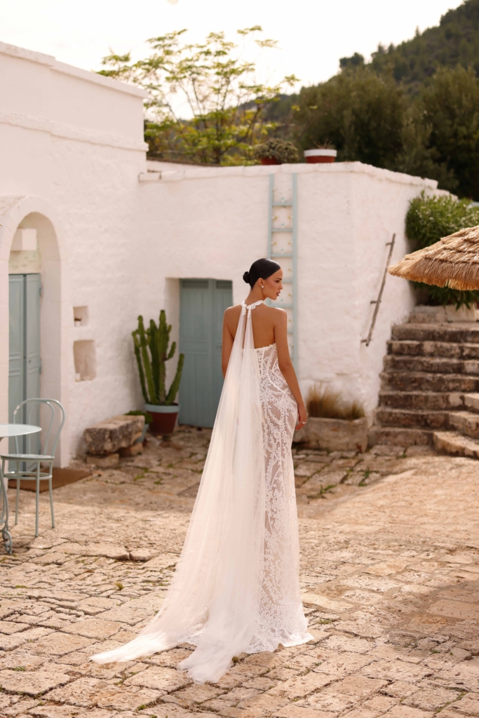 Emmanuele este rochia de mireasă perfectă pentru femeile care caută o combinație între finețea dantelei, eleganța croielii sirenă și detalii couture. O rochie cu un design actual, rafinat și extrem de fotogenic, ideală pentru o mireasă modernă și încrezătoare.