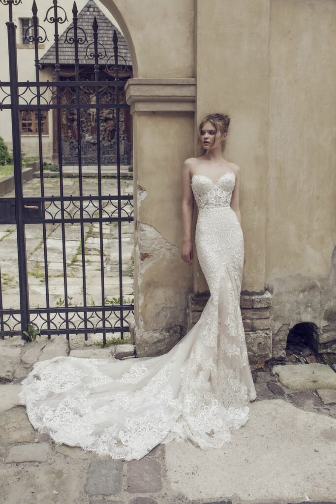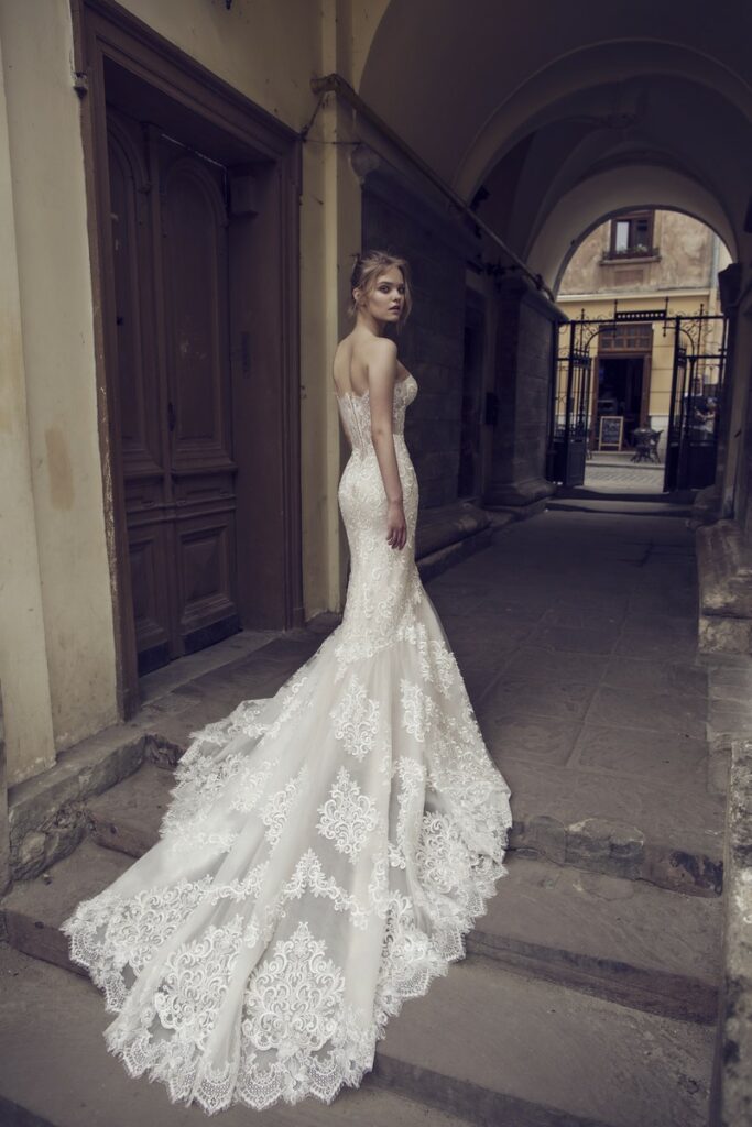Ariel are bretele detasabile din tulle cu aplicatii de fides. Fusta sirena de la Ariel are numeroase straturi de tulle si dantela ce ofera un aspect delicat,dar seducator. Rochia de vis a oricarei mirese ,cu decolteul sau minunat,dantela moale si trena de sirena uluitoare.