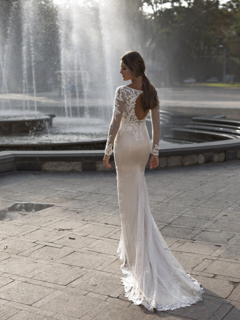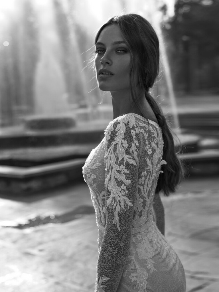 Este o declarație la modă care îți va satisface fiecare dorință! EVA este o rochie delicată care se îmbrățișează pe corp, cu aplicație de dantelă florală, mâneci transparente cu plasă lungă și flori, decolteu adanc, usor trenanta cu terminatie e dantela.