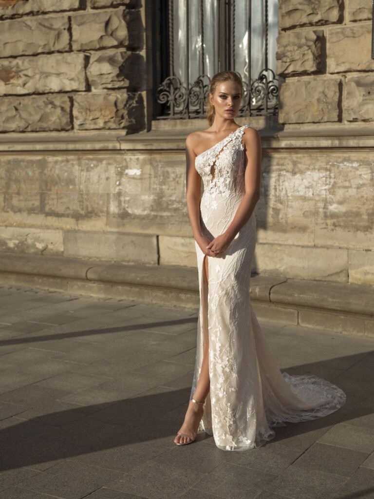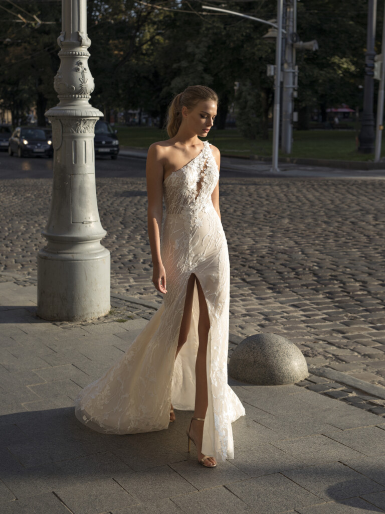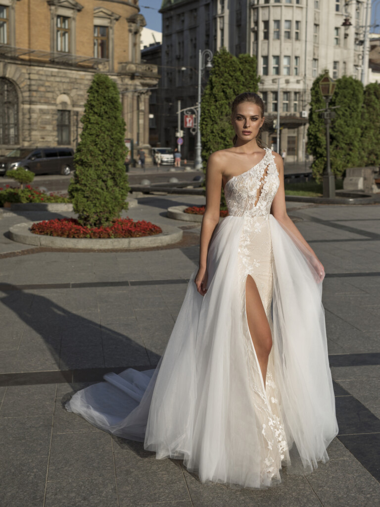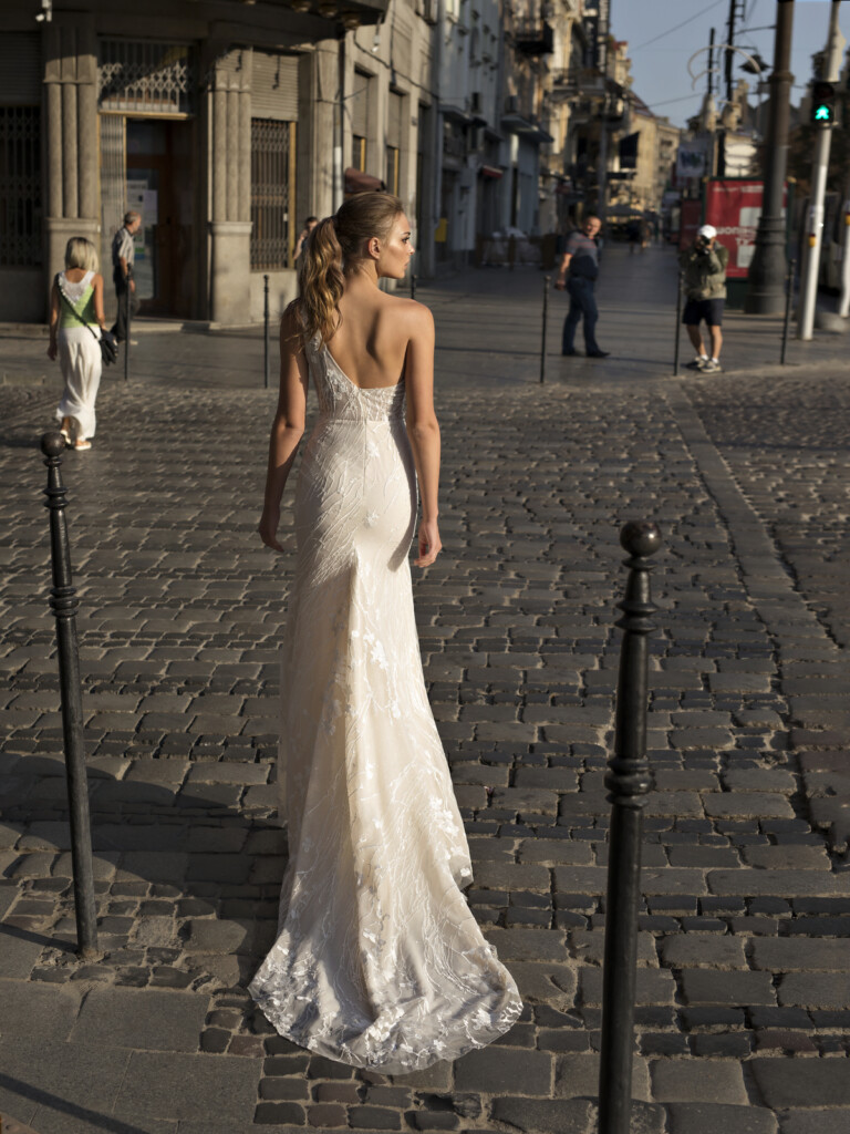 Miley este incredibil de superba cu florile 3D si corsetul potrivit,care are o trena detasabila care se prinde in zona taliei.Aceasta rochie cu un singur umar este impodobita cu aplicatii de flori albe pe corset nude,dandu-i un efect uimitor.