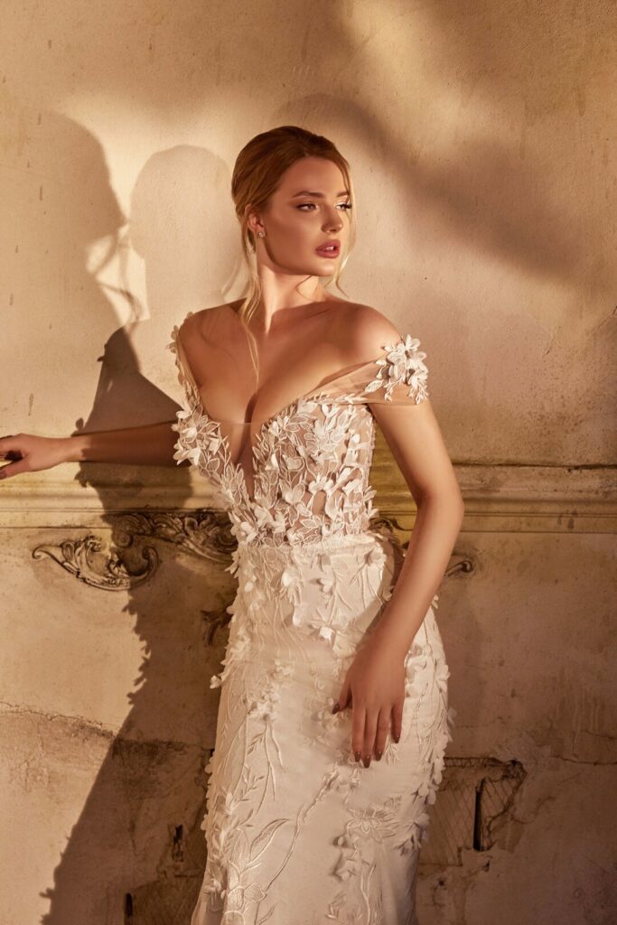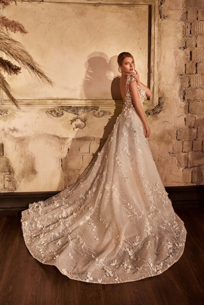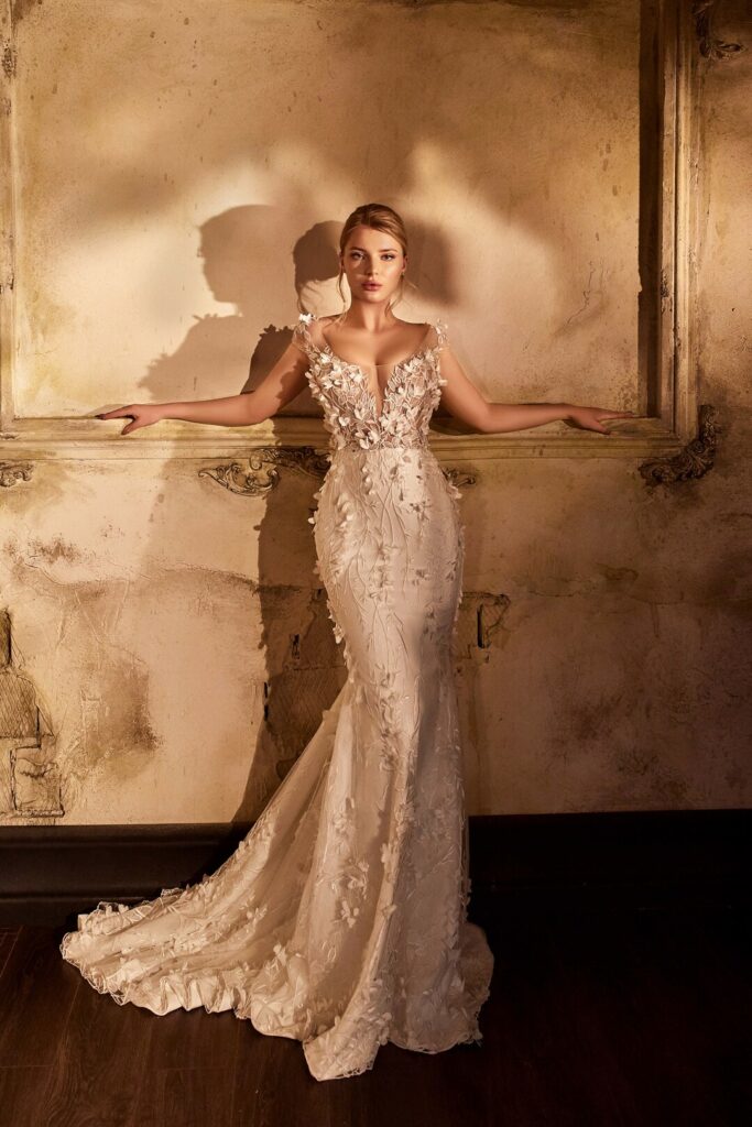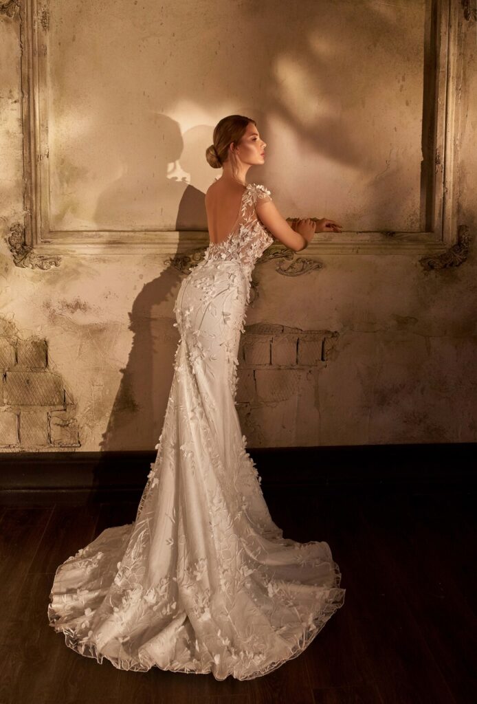 Vera Sposa » Rochii de mireasă » Colecția Emozione » EM-2107EM-2107ROCHII DE MIREASăRochie de mireasa stil sirena ,eleganta si senzuala . Aceasta rochie are detalii florale 3D si o trena detasabila ampla . Bustul este adanc coborat in V iar spatele foarte decupat COD PRODUS VS-0356-12077 » PROGRAMEAZA O VIZITA