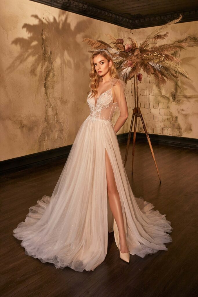 Vera Sposa » Rochii de mireasă » Colecția Emozione » EM-2116EM-2116ROCHII DE MIREASăRochita de mireasa este un model diafan potrivit pentru miresele care vor sa se simta confortabil, dar si elegante.Crapatura fustei ii ofera rochiei lejeritate dar si o nota de senzualitate. COD PRODUS VS-0356-12125 » PROGRAMEAZA O VIZITA
