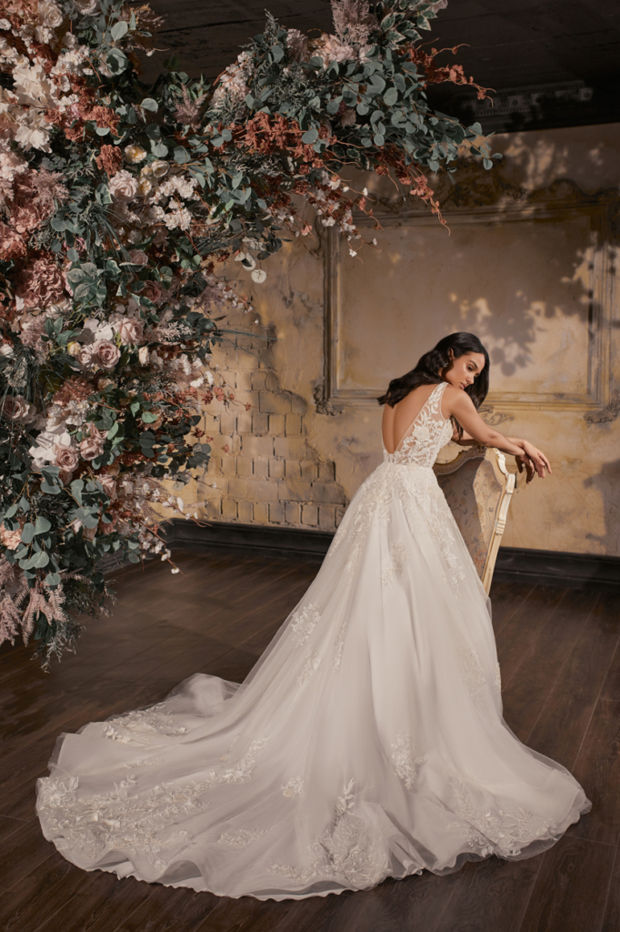 Vera Sposa » Rochii de mireasă » Colecția Flowers » MILASMILASROCHII DE MIREASăRochie de mireasa tip linie A, din tulle cu o usoara trena. Corset cu bretele si decolteu usor adanc si spate gol. COD PRODUS VS-0363-15073 » PROGRAMEAZA O VIZITA